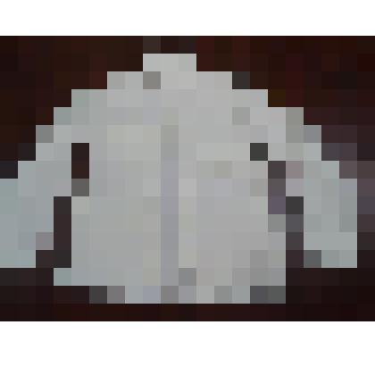Сшита из ткани светлого цвета, без воротника. Спереди и на рукавах вставка голубого цвета. Рукава длинные со спущенным плечом. Ворот, низ джемпера и рукавов украшен вставкой вязки «резинка».