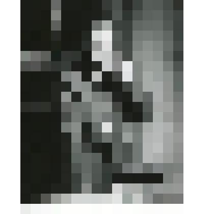 Блок, фрагмент белого цвета в виде треугольника. На поверхность нанесены параллельные насечки. Край неровно отколот.