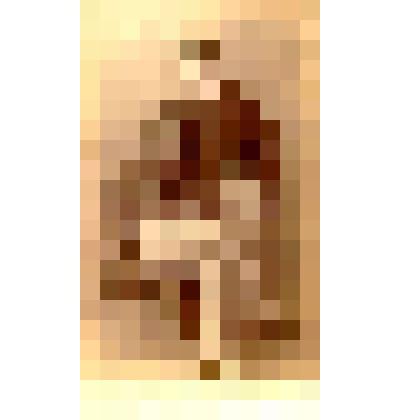 Оплечно, корпус прямо, голова 3/4 вправо, в светлом платье, с распущенными волосами. Низ изображения размыт
