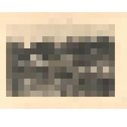 На переднем плане юрта и одноэтажный дом, перед ними стоят и сидят взрослые и дети. Справа гора. Фото наклеено на паспарту из белого картона, обведено двойной голубой рамкой. Под рамкой аннотация в 3 строки, выполненная черной тушью.