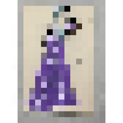 Женская фигура в рост, в профиль влево. Розовое длинное платье с темно-серыми элементами; светлые волосы.