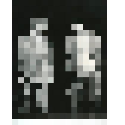 Двойной портрет цветной. На нём изображены двое мужчин, один из которых в форме с орденами и медалями. П. С. Дорофеев председатель городского комитета Ветеранов. Справа от него В. Н. Баварин. На заднем плане слева сверху горшок с папоротником и другие цветы, сзади жалюзи с изображением гор, воды и рыбака