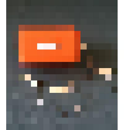 Лыжа детская пластмассовая, оранжевого цвета. Прямоугольная, с закругленным, приподнятым вверх носом. Имеет сквозное отверстие сбоку для фиксирования лыжного крепления. Лыжное крепление (2 шт.) представляет собой фрагмент пластмассы прямоугольной формы в виде ремня с отверстиями круглой формы для фиксирования стопы. Подошва лыжи имеет ребристую поверхность.