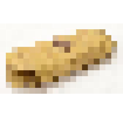 Сплетен из полос бересты светло-коричневого цвета шириной около 1 см, плетение косое. Головка глубокая, кромка по краю головки приподнята; носок острый. Подошва немного расширяется от пяточной части к носовой. Бортики и задник высокие.