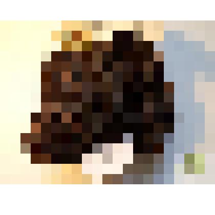 Прямоугольной формы. На темно-красном фоне изображение розовых веток и трех белых розеток из семи сплетенных колец с горошиной в центре. Наклеено на прямоугольный лист бумаги