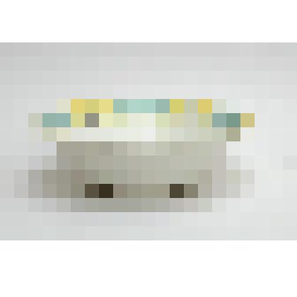 Селёдочница фаянсовая, белая, овальной формы, по краю борта роспись в виде вертикальных полос жёлтой, зеленоватой, чёрной глазури, по нижнему краю борта отводка жёлтой глазури.