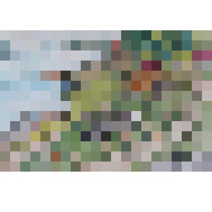 На листе бумаги прямоугольной формы изображен пруд с гуляющими около него людьми.