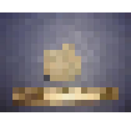 Пейзаж. На первом плане - схематическое контурное изображение двух лодок, на среднем - холмик с двумя деревьями, на дальнем справа - берег с домиком, церковью, деревьями.