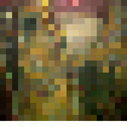 Передней план-поляна, на которой сидит (предположительно) птица. Вокруг-деревья с большими кронами. За деревьями изображен дом. Справа-еще два. Слева, в нижнем углу-надпись:"Морозов-86"