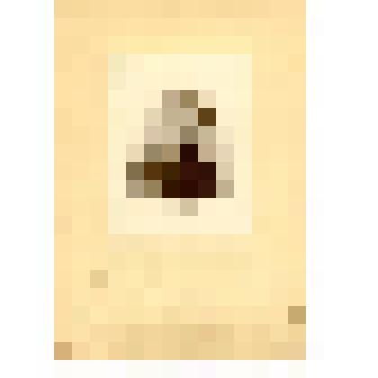 Погрудно, почти прямолично; в темном пиджаке, белой рубашке с воротником - стойкой и темнм галстуком; сидит, держит на руках темную лохматую собачку. На углах изображения - белые следы кнопок.