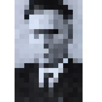Погрудный портрет мужчины в клетчатом сером пиджаке, серой рубашке и черном галстуке