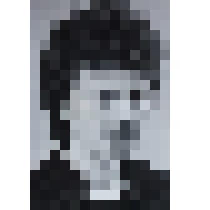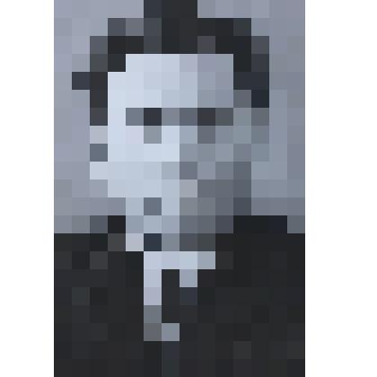 Погрудный портрет мужчины в темном пиджаке в полоску, белой рубашке и галстуке с белой отделкой