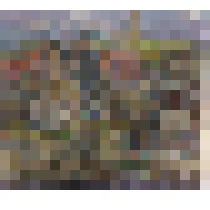 На листе изображены два дома с красными кирпичными крышами. За домами и перед ними – деревья. У крыльца дома слева стоит телега с двумя запряжёнными лошадьми. Рядом с телегой по направлению к крыльцу идут две женщины. Ещё две женщины стоят возле второго дома. Справа – угол высокого дома с двумя окнами вверху и дверью, над которой висит вывеска «maistre». К стене у двери прислонён велосипед. Возле дома стоят спиной к зрителю двое мужчин. Ещё две женщины идут по улице мимо дома.