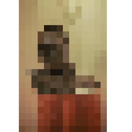 Голова мужчины с бритым лицом, длинными волосами. Волосы и глаза с зеленью, лицо тонировано под бронзу.
