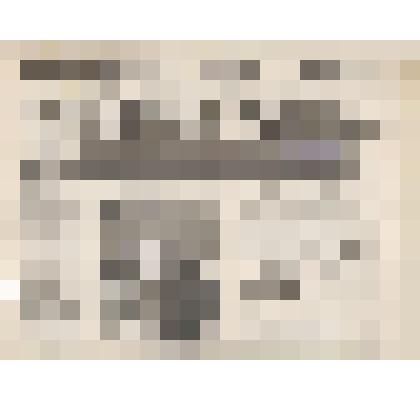 Натюрморт. На фоне дощатой стены на цветастой, сшитой из лоскутков, ткани изображение трех чугунных утюгов.