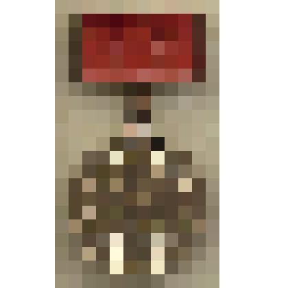 Значок нагрудный "Капри" квадратной формы с изображением В.И.Ленина, золотистого, коричневого, красного, черного цветов, с булавочным креплением. Серия "Ленинские места. Города, в которых жил и работал В.И.Ленин". Из коллекции по теме "Лениниана" — АМЗ КП 27551/4