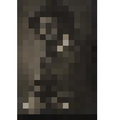 Изображение поясное, прямое, руки до локтя разведены в стороны и соединены по подбородком. На голове широкий обруч в древнегреч (?) стиле.