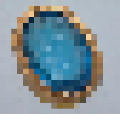 голубая, прозрачная, овальная, в форме кабошона; изображение мужчины, профиль вправо, с пышной бородой, в шлеме с шипами, увенчанном корзиной; (ст.инв № ЦХ-10028-I).