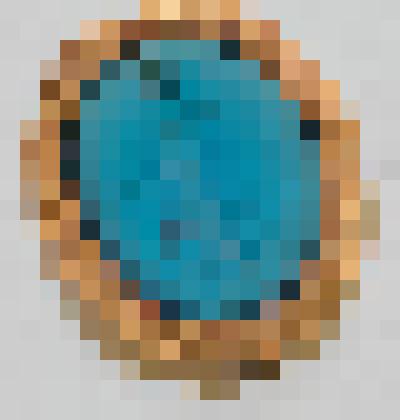 голубая, прозрачная, овальная, в форме кабошона; изображение трех острых палочек, перехваченных посередине крылышками, вокруг символа - изображение змеи, свернувшейся в кольцо; в рамке из нескольких слоев бумаги с золоченым верхним срезом; (ст.инв № ЦХ-10028-I).