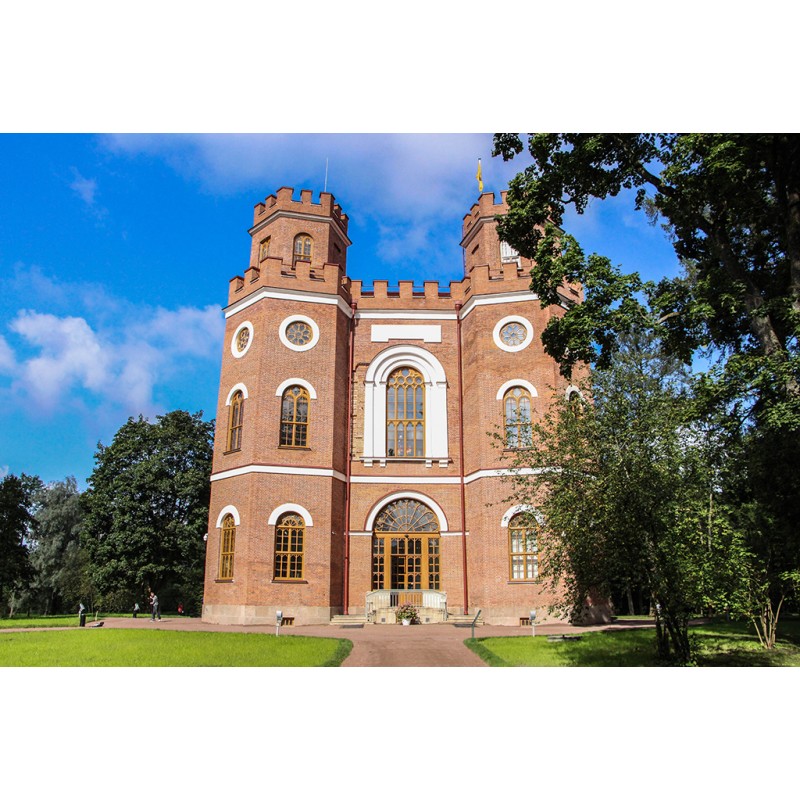 «Арсенал» – главный павильон Александровского парка. Александр I принял решение перестроить первоначально находящийся на этом месте павильон «Монбижу» и выбрал для нового облика павильона одно из неоготических сооружений в английском королевском парке в Виндзоре. В 1819–1834 годах здание Монбижу было перестроено в неоготическом стиле по проекту шотландского архитектора Адама Менеласа – так появился павильон «Арсенал».