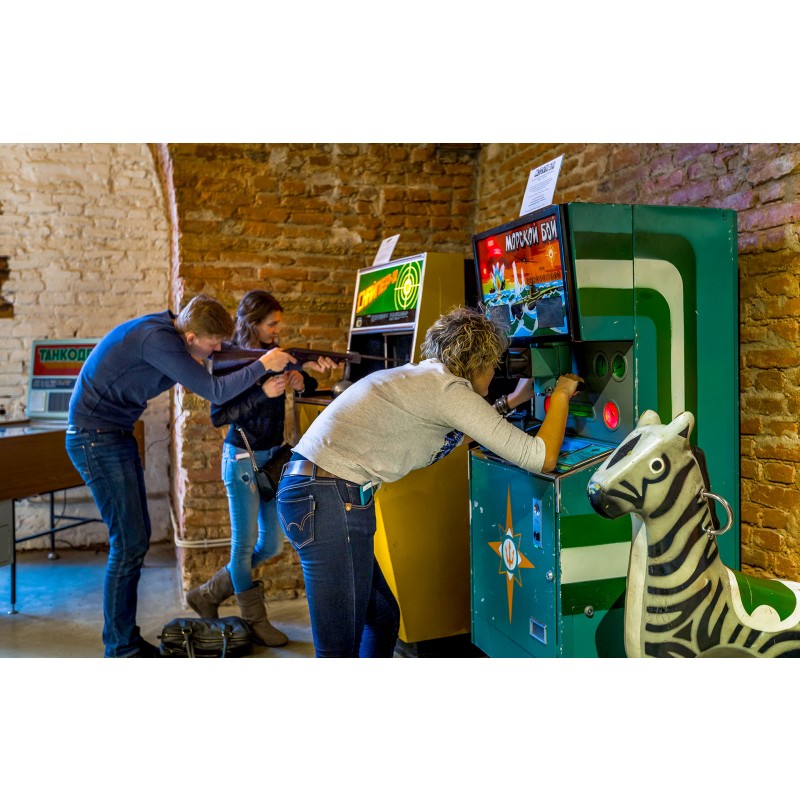 Интерактивная экспозиция включает в себя знаменитые образцы советской индустрии развлечений, такие как «Морской бой», «Сафари», «Городки», «Снайпер», «Магистраль» и другие. Запускаются игровые автоматы, как и раньше, с помощью 15-ти копеечных монет, которые прилагаются ко входному билету. Играть можно как одному, так и в компании. Для самых маленьких посетителей предусмотрены разнообразные автоматы-качалки.