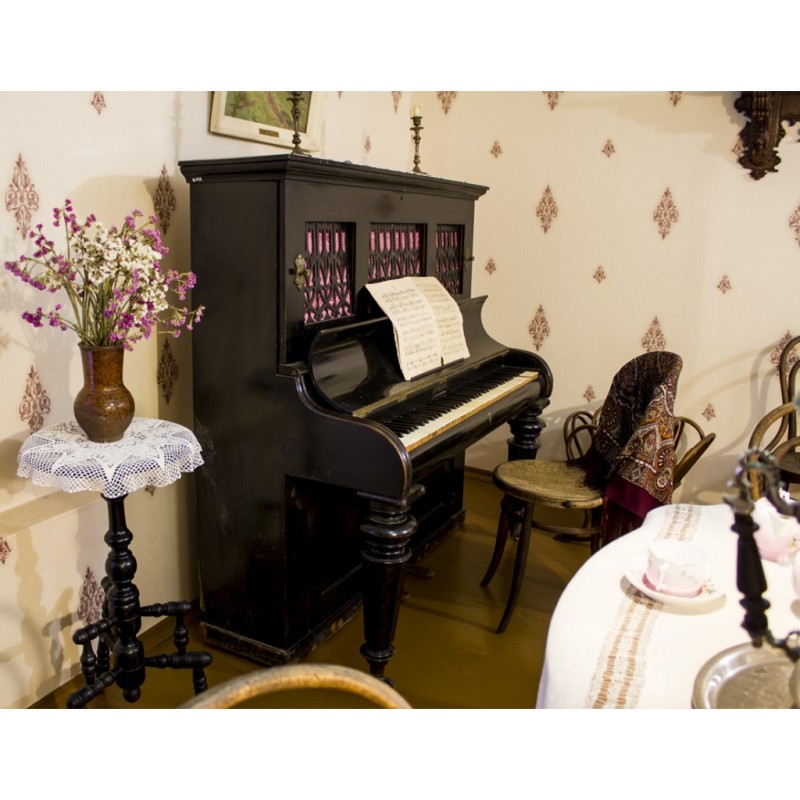 В мезонине – мемориальные комнаты. Обстановку помогла воссоздать внучка прежнего хозяина дома. В комнате, где жили Левитан и Степанов, личные вещи художников: дорожный мольберт и охотничья сумка И. И. Левитана, подаренные племянниками пейзажиста, а также этюдник А. С. Степанова.