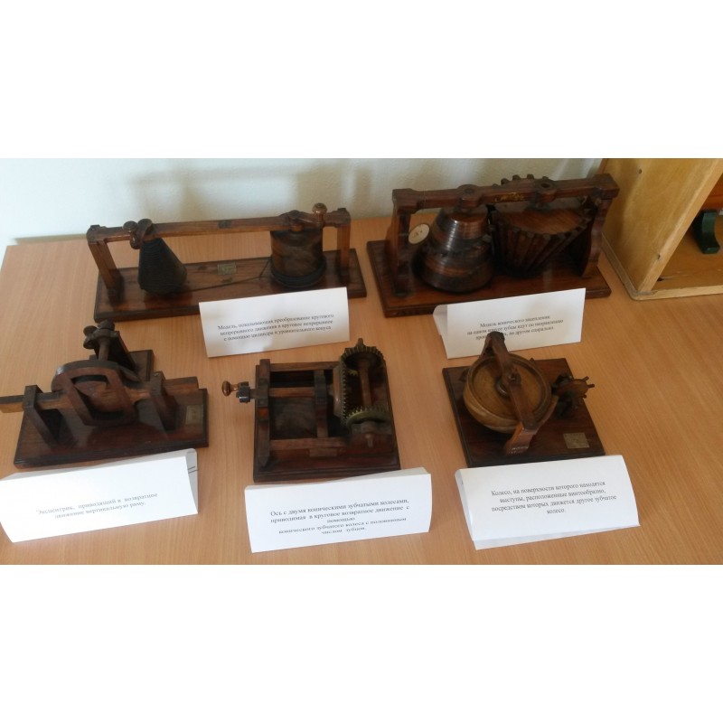 Экспозицию раздела математики, механики, астрономии составляют в основном модели механизмов, которые в течение десятилетий бережно хранились сотрудниками кафедры теоретической и прикладной механики математико-механического факультета СПбГУ. Эти модели перешли к кафедре из Кабинета практической механики, который был основан в 1865 году под руководством приват-доцента М. Ф. Окатова.