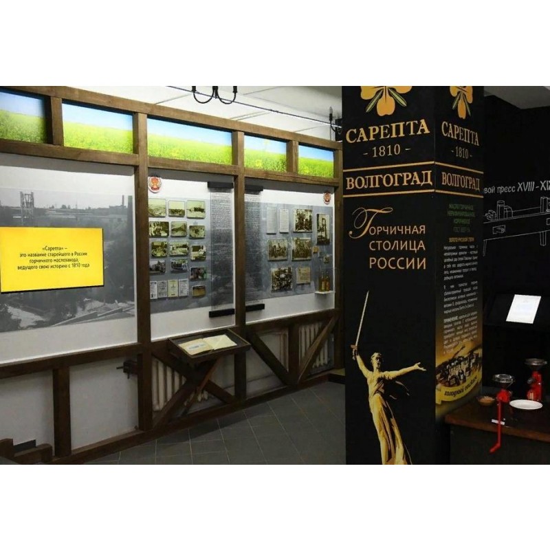 Музей российской горчицы – это современная интерактивная экспозиция. Здесь можно узнать о том, как использовалась горчица разными народами, начиная со времен Древней Греции и заканчивая последними достижениями современного горчичного завода. Особое внимание уделено распространению горчицы в нашей стране, развитию горчичного производства в Сарепте.