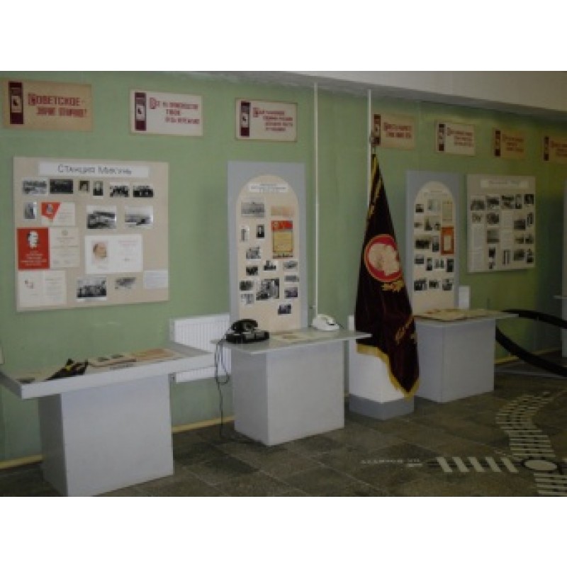 Основная экспозиция музея расположена в двух залах и рассказывает о строительстве Северо-Печорской железной дороги «Котлас – Воркута» в 30-е. гг. ХХ в. и станции Микунь, ставшей в 1959 году городом. Уже 28 декабря 1941 года через станцию Микунь прошел первый эшелон с углем из Заполярья. В залах музея представлены экспонаты, рассказывающие об истории строительства Северной железной дороги (участок Котлас – Княжпогост), фотографии, грамоты, письма, личные вещи первых строителей железной дороги, макеты и детали паровозов. Стальная магистраль стала градообразующим предприятием. История большинства предприятий – железнодорожное депо станции Микунь, ПЧ-28, ШЧ-14 – без этих структур – служб движения, пути, связи и других – немыслима ни одна железная дорога. История о том, как станция Микунь превратилась в крупнейшую узловую станцию Республики Коми, стала её «железнодорожными воротами».