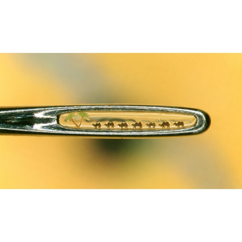 В работах автор фондовой экспозиции мастер-микроминиатюрист, физик СО РАН Владимир Анискин (Новосибирск) использует разные ремесла: кузнечное дело, литье, обработку стекла, работу с берестой, ювелирное искусство – процессы обработки на микроуровне детально повторяют обычные технологические процессы. В экспозиции можно увидеть классику жанра: подкованную блоху (подковы блохи в 6 миллионов раз меньше подковы лошади), караван верблюдов в игольном ушке (высота верблюдов 0,07-0,08 мм), текст в 2 печатные страницы на срезе рисового зернышка, коллекцию государственных наград на крупинках мака, розу внутри волоса, микроминиатюрных героев мультфильмов.