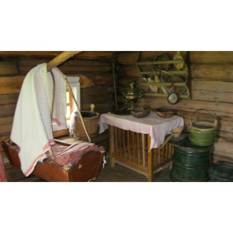Дом состоит из теплой и холодной изб, поставленных на высокие подклети и соединенных сенями и поветью. Все помещения покрыты общей двухскатной крышей из теса. В дом ведет высокое крытое крыльцо. Поветь служила местом для хранения орудий труда. По взвозу на повить через ворота завозили сено на лошади. Из сеней влево на южную сторону – летняя изба, прямо, на северную сторону – зимняя изба. В теплой половине стоит макет большой русской печи с голбцем. В голбце встроена дверь, ведущая в подклеть – подвал, где хранились овощи. В зимней половине с правой стороны от входа стоит макет русской пеки с голбцем. К печи примыкают полати на воронцах-балках.