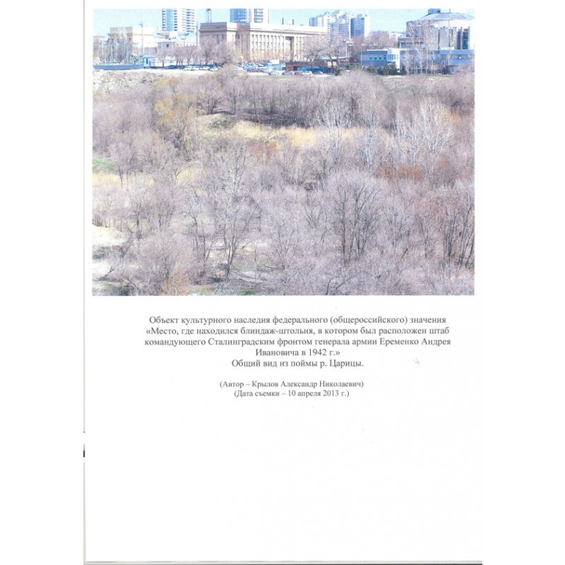 Место, где находился блиндаж-штольня, в котором был расположен штаб командующего Сталинградским фронтом генерала армии Еременко Андрея Ивановича в 1942 г.