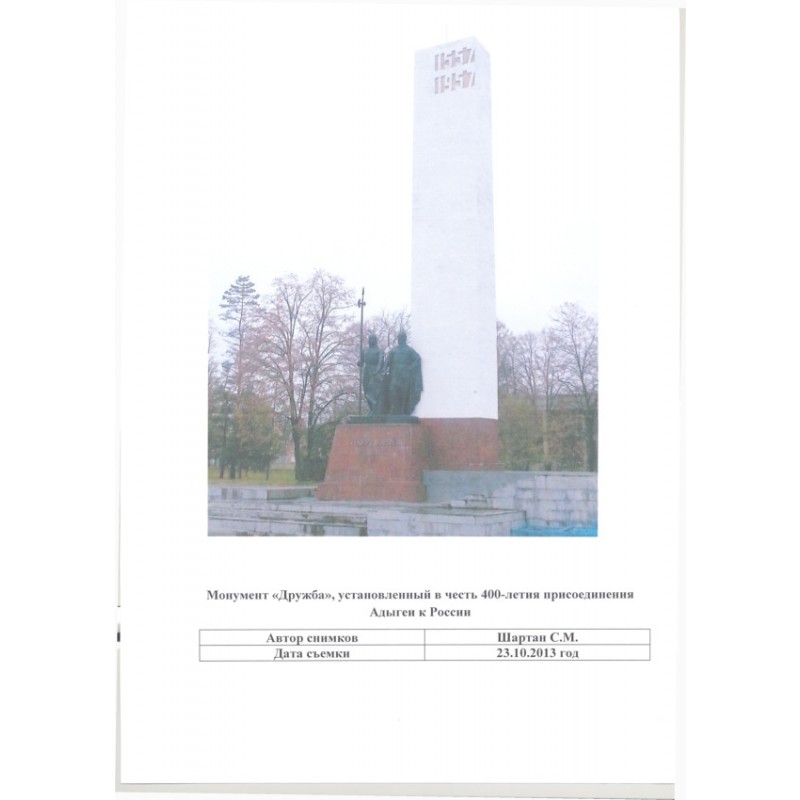 Монумент "Дружба", установленный в честь 400-летия присоединения Адыгеи к России