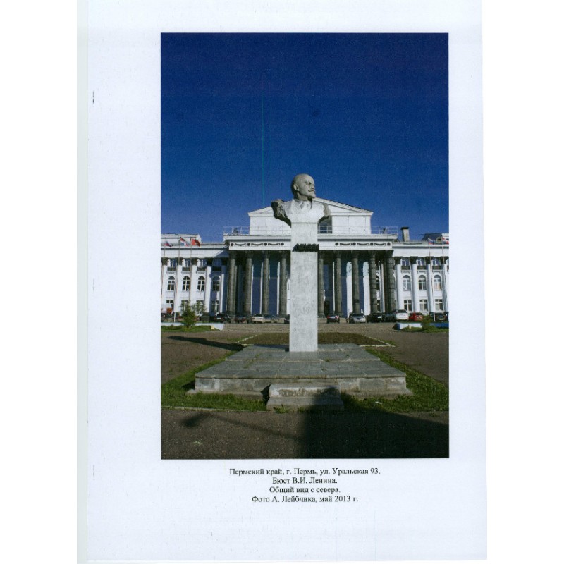 2.1.Бюст из серого гранита, представляющий собой погрудный портрет Высокий прямоугольный квадратный в плане пьедестал закреплёнными на нём объёмными металлическими буквами "ЛЕНИН".