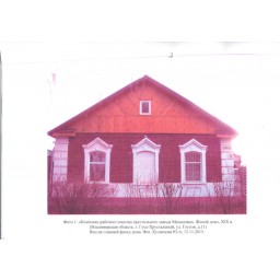 4. Композиция и архитектурно-художественное оформление фасадов здания конца XIX века, включая следующие элементы: местоположение, форму (лучковую), размер оконных проёмов; плоскостное решение главного фасада двухэтажной части на шесть оконных осей и его асимметричную композицию; наличники оконных проёмов, составленные из лепных профилированных тяг, дугообразных сандриков с замковыми камнями, в уровне второго этажа усложнённые прямоугольными сандриками; отличающееся от других обрамление окна на втором этаже рельефным наличником полуциркульной формы с круглой филенкой; закрепление углов и деление фасада филенчатыми лопатками с венчающимися парапетными столбиками и фигурными аттиками; членения по горизонтали линией цоколя, подоконными тягами, межэтажным поясом, составленным из ступенчатых тяг и подоконных филенок, фризовым и карнизным поясами из профилированных тяг и сухариков; местоположение (главный вход с двумя боковыми окнами), форму (лучковую), размер и оформление оконных проёмов, прямоугольного дверного проёма главного фасада одноэтажной части; акцентирование оси симметрии расположением центрального входа и фигурным фронтоном, в композицию которого включены парапетные столбики, фигурный аттик с фигурными филенками в тимпане; фланкирование углов рустованными лопатками; горизонтальные членения в виде профилированного фризового пояса; двухчастную композицию ворот с воротами и калиткой лучковых очертаний; кирпичные устои ворот с парными полуколоннами и венчающими парапетной стенкой и столбиком, украшенными филенками, сухариками, геометрическим орнаментом, тягами, профилированными карнизами; оформление ограды профилированными тягами.