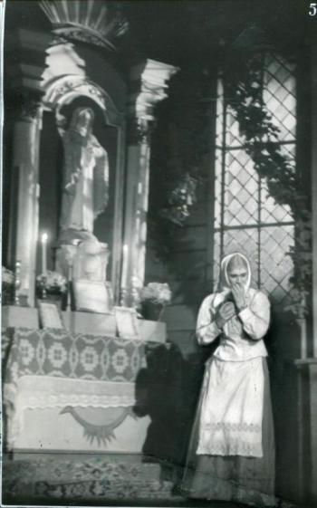 Алтарная часть храма, примыкающая к основному объему с восточной стороны, сформирована прямоугольным в плане объемом, дополненным полукруглой апсидой.