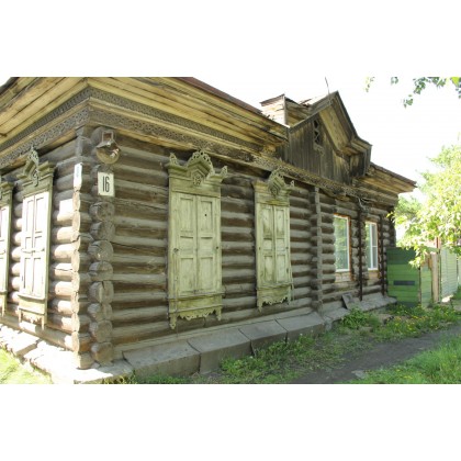 Габариты, конфигурация и оформление оконных проемов одного типа: прямоугольные с лучковым завершением, на первом и втором этажах – вертикально вытянутые, в цоколе – более короткие, почти квадратные.