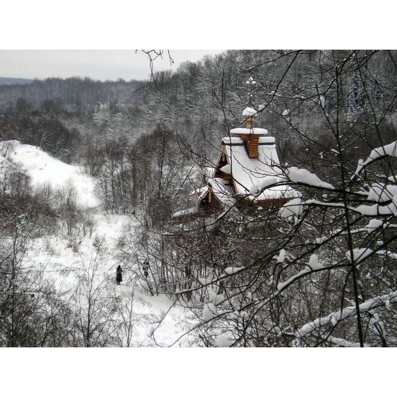 местоположение часовни при Источнике Преподобного Сергия Радонежского: деревянная площадка, устроенная рядом с Источником на береговом склоне;