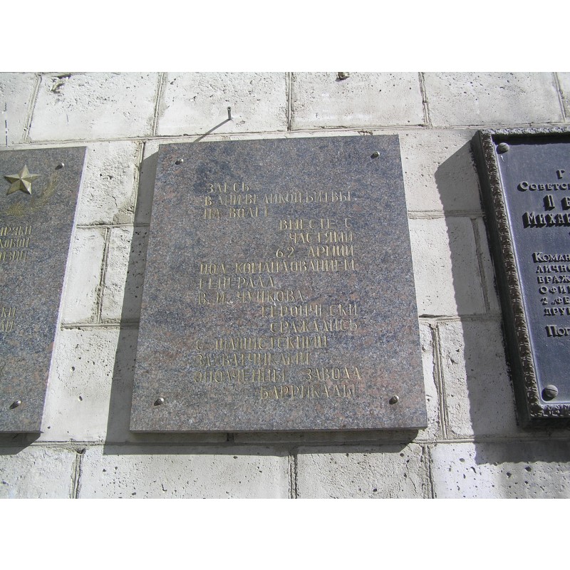 Место, где в дни Сталинградской битвы сражались воины 62-й армии и ополченцы завода "Баррикады"