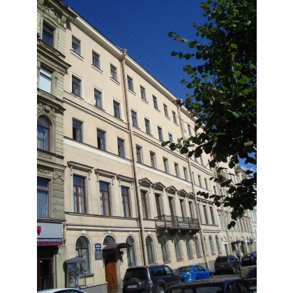 ул. Комсомольской, включая очертания кровли с выступающим карнизом, парапетными столбиками с вазонами и центральным фонарем - мансардой;