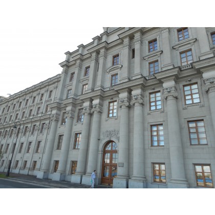 - объемно-планировочная композиция двухэтажного здания 1925 года, выполненного в стиле конструктивизма: г-образная в плане форма, смещенный от оси симметрии центральный вход, коридорная система и функциональное зонирование помещений (конференц-зал, чайная-столовая, парикмахерская, гостиничные номера);