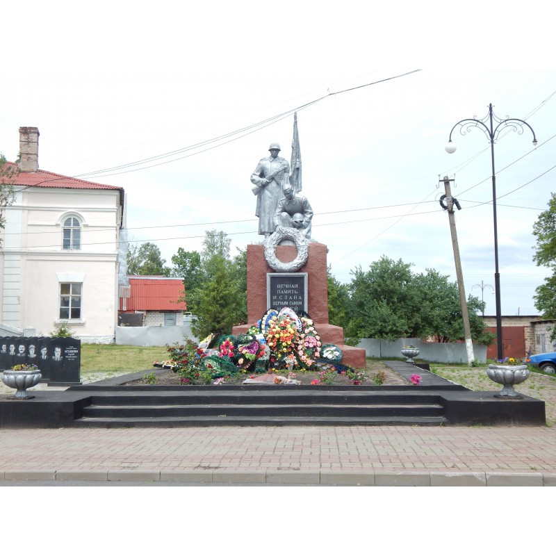 Братская могила воинов Советской Армии, погибших в феврале 1943 г. Захоронено 502 человека, установлено фамилий на 260 человек. Скульптура установлена в 1954 году