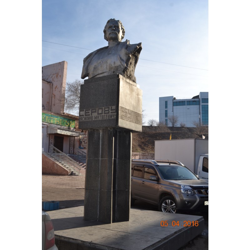 2. На постаменте бюст ( скульптурное изображение по пояс) Серова В. М., обращенный на запад. На западной грани постамента выгравирован текст: « СЕРОВУ ВАСИЛИЮ МАТВЕЕВИЧУ»,на южной грани постамента выгравирован текст: «ПЕРВОМУ ПРЕДСЕДАТЕЛЮ ВЕРХНЕУДИНСКОГО СОВЕТА ОТ ТРУДЯЩИХСЯ УЛАН - УДЭ», на северной грани постамента выгравирован текст: «ВЕРХНЕУДИНСКЫН СОВЕДЭИ ТYРYYШЫН ТYРYYЛЭГШЭДЭ УЛАН - УДЫН АЖАЛШАДhАА».