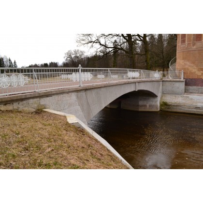 арочное пролетное строение и береговые устои с волнорезами-контрфорсами (известняк); трехцентровая арка;