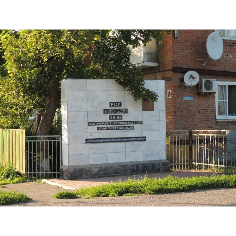Памятный знак в честь начальника штаба Кочубеевской бригады А.С. Роя