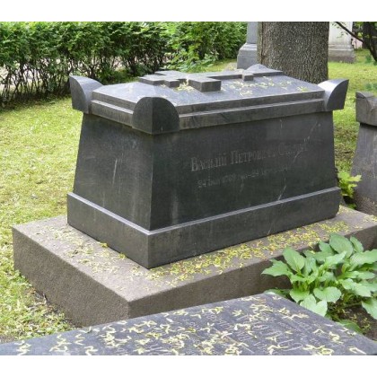 Объемно-пространственное и архитектурно-художественное решение: историческое местоположение захоронения и конфигурация надгробия; историческое решение мраморного надгробия в виде прямоугольной в плане профилированной фигурной мраморной стелы, декорированной пальметами, розетками, рельефами символического и растительного характера, на прямоугольном в плане профилированном постаменте из габбро и прямоугольном в плане основании из красного гранита; каплицы с крестом на гранитном ступенчатом постаменте, на подиуме со ступенями, металлической оградой и цветником; рельефные символы, характер и содержание надгробных надписей.