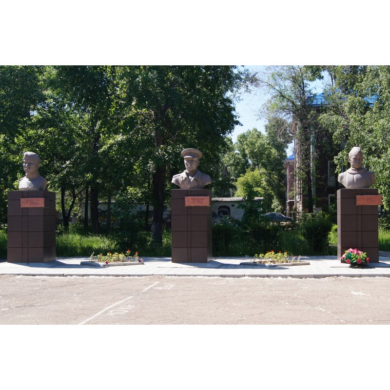 Бюсты комсомольцев - Героев Советского Союза Рублевского В.С. Добродомова Г.С. Сидоренко И.С.