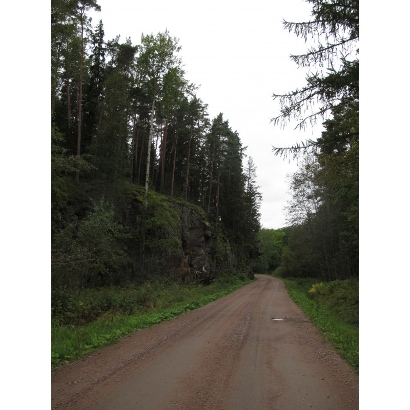 Дорога от скита Всех Святых к монастырю с придорожным знаком на скале