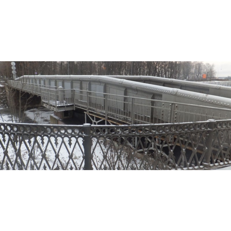 ограждение по внешней стороне устоев моста – габариты, материал (чугун), техника исполнения (литье).