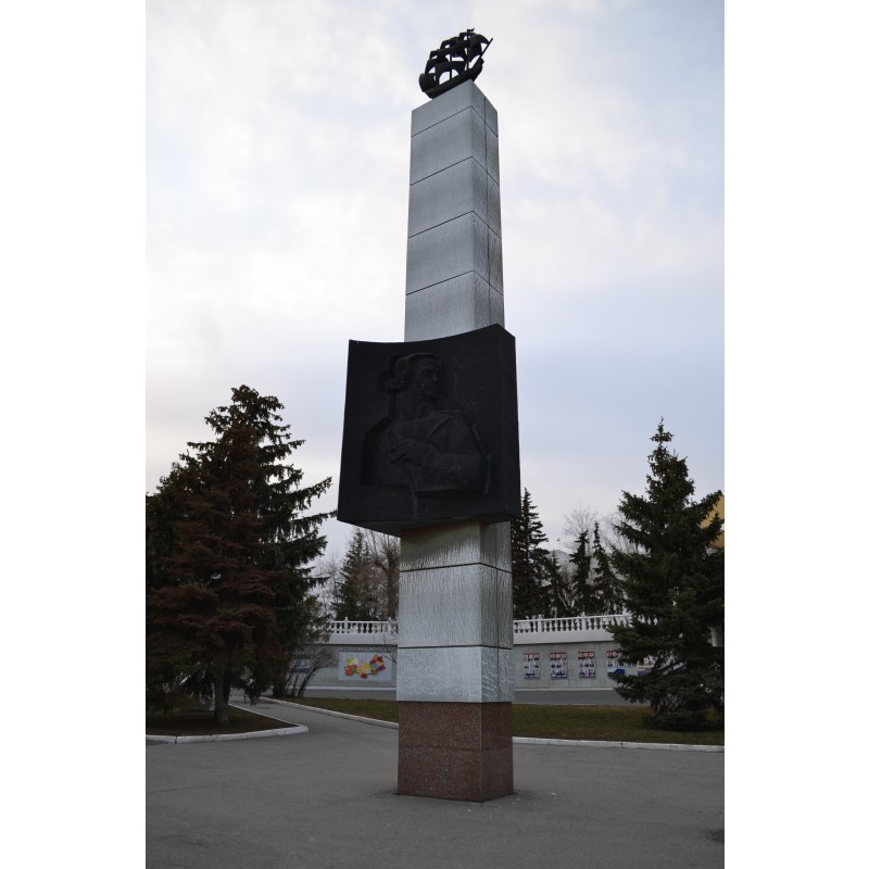 Скульптурная композиция великому русскому флотоводцу Ф. Ф. Ушакову. Скульптор В.Б.Шелов, архитекторы В.И.Борисов, Д.С.Витухин. Сооружена из меди